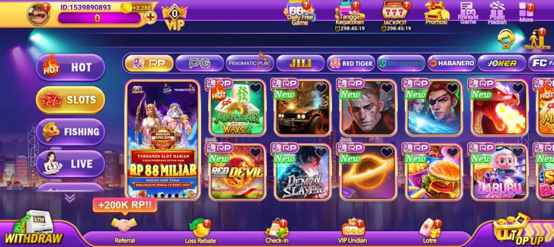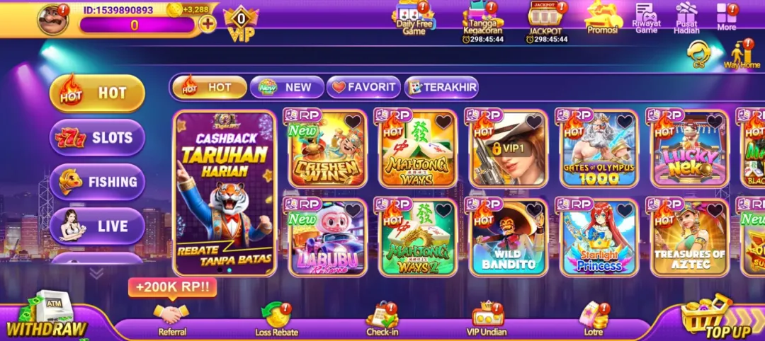 - Pemain bisa mendapatkan spin gratis, bonus login, serta event jackpot khusus.
